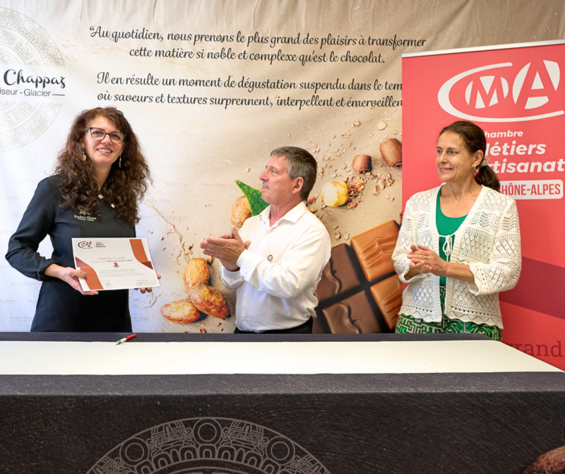 Vendredi, j’ai reçu officiellement le titre de Maître Artisan Chocolatier-Confiseur remis par le Président de la Chambre de Métiers et de l’Artisanat de l’Isère.