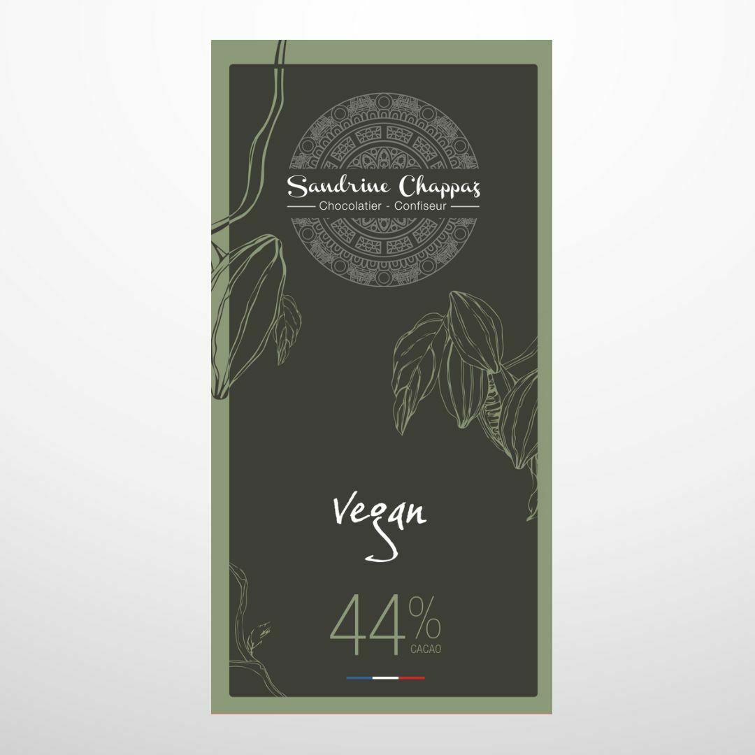 - une tablette de chocolat 44 % vegan, aux notes de cacao arrondies et de noisette