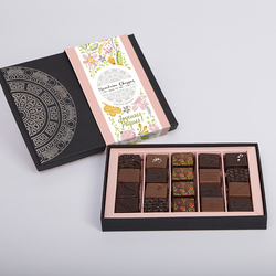 Cette année, nous vous proposons une boite d’assortiment décorée d'un fourreau spécialement créé pour Pâques, lui apportant une touche élégante et festive.