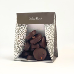 Pétales de gingembre confit enrobées de chocolat noir 64% de cacao.